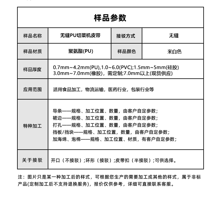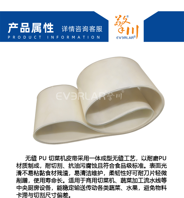 • 產(chǎn)品名稱:無縫PU切菜機皮帶抗撕裂防油污中央廚房全自動切菜設(shè)備輸送帶