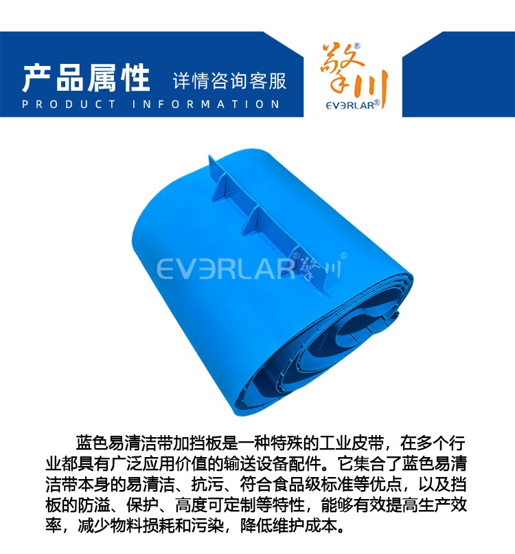 • 產(chǎn)品名稱:易清潔TPU加擋板輸送帶藍(lán)色食品級防溢抗污生產(chǎn)線設(shè)備傳送帶