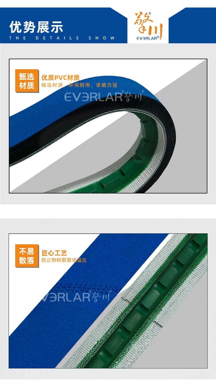 易清潔TPU加擋板輸送帶藍(lán)色食品級(jí)防溢抗污生產(chǎn)線設(shè)備傳送帶